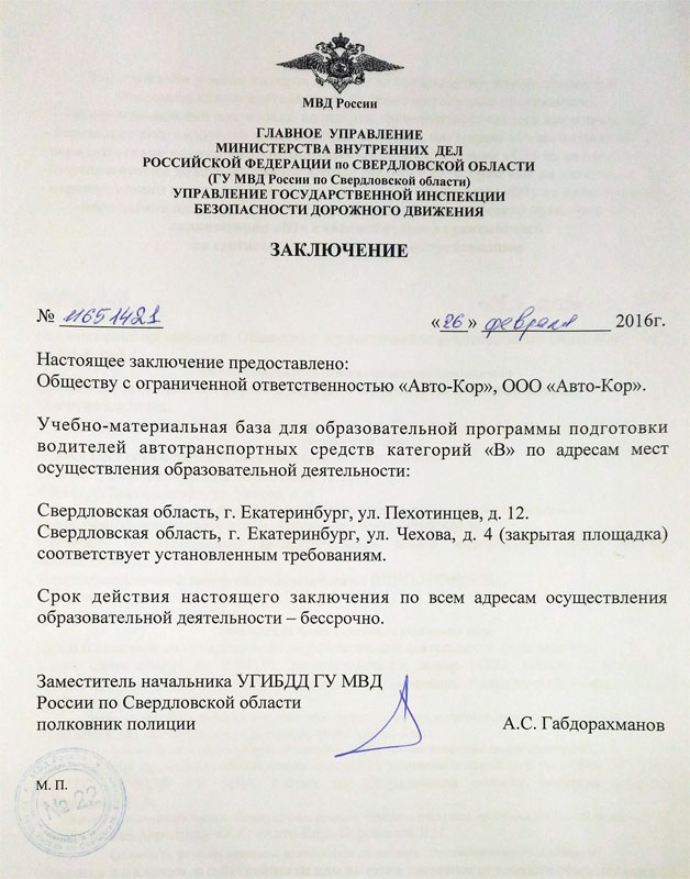 Бессрочное заключение ГИБДД от 26.11.2014 года (.pdf, 72 Kb)