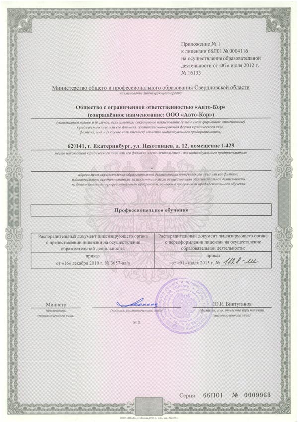 ЛицензияНОВЫЙ НОМЕР: Л035-01277-66/00196080